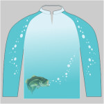Bass-Blu design custom dye sublimation fishing jersey. Complete the options below and then use our online designer by clicking on the START DESIGNING bar. You can add name and text, also select items from stock designs or upload your own. Sponsor logos are listed in the first category - Allowed on Fishing Jerseys Only.