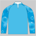 Bubbles design custom dye sublimation pro fishing jersey. Complete the options below and then use our online designer by clicking on the START DESIGNING bar. You can add name and text, also select items from stock designs or upload your own. Sponsor logos are listed in the first category - Allowed on Fishing Jerseys Only.